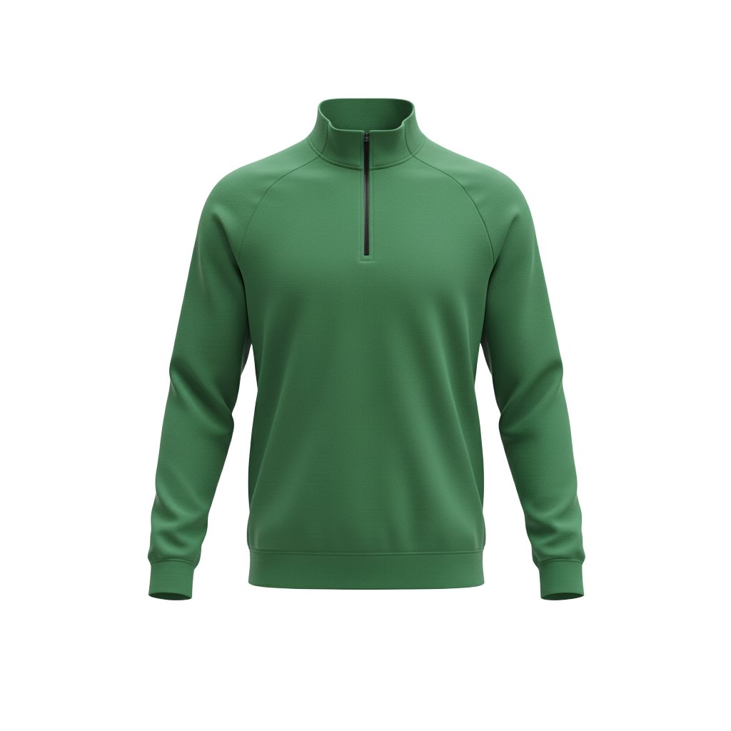 Green athletic quarter-zip pullover with a stand collar—perfect for training, layering, and everyday sporty wear.
