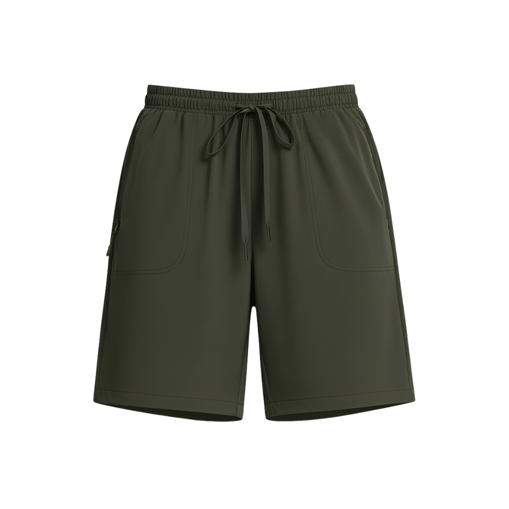 The button-zip fly and elastic waistband with belt loops offer functional adjustability, while the 10\” inseam offers optimal mobility. Ideal for hiking, golfing, jogging, and traveling, or for casual outdoor activities. Eco Jersey provides bulk, private label, and OEM services for performance apparel.
